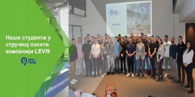 Наши студенти су 11. априла 2023. године били у посети компанији LEVI9. Циљ ове посете био је упознавање њиховог начина рада, стручних компетенција и могућности запошљавања. Компанију је посетило 35 студената са својим професорима, а дочекали су их наши бивши студенти, сада као запослени. Захваљујемо се представницима компаније LEVI9 на издвојеном времену и изузетном гостопримству, као и на значајним информацијама које су пренели нашим студентима.